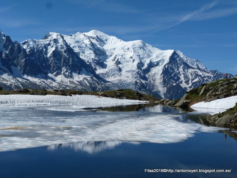 Los Lagos de Cheserys, estan situados en un lugar privilegiado. Sus vistas sobre el Macizo del Mont Blanc son impresionantes y las imágenes relejadas sobre las tranquilas aguas del Mont Blanc, Aiguilles de Chamonix...hace que decidamos parar un rato y aprovechar para comer algo teniendo como telón de fondo estas inmejorables vistas.